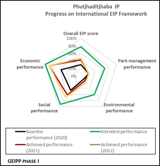 Phuthaditjhaba Industrial Park’s baseline performance was 31% in 2020, rising to 43% in 2021 and 47% in 2022, with steady improvements in environmental, social, and economic performance through 2023. The park has strong potential for further growth in economic, social, and management performance heading into 2024- 2025.