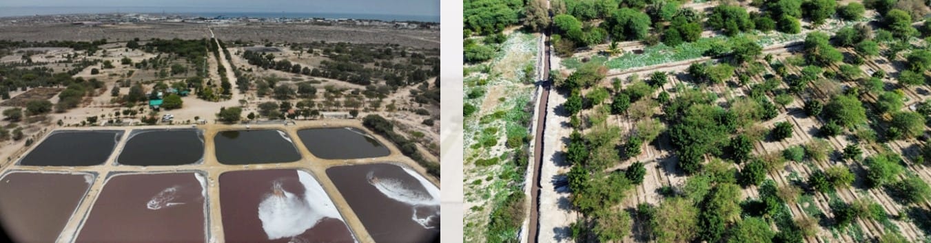 ZED Paita has implemented an innovative wastewater treatment system using oxidation lagoons, comprising aerobic, anaerobic, and maturation ponds that efficiently remove organic loads and microbial contaminants. In 2023, it reused 310.590 m³ of treated water, and in 2024, 146.809 m³, contributing to the preservation of local water resources. This system irrigates 10.830 trees across 65 hectares of green areas, promoting biodiversity and environmental sustainability within the industrial park. Additionally, it engages 34 companies within the park and 10 external companies, fostering industrial symbiosis and positioning ZED Paita as a leader in sustainable development.